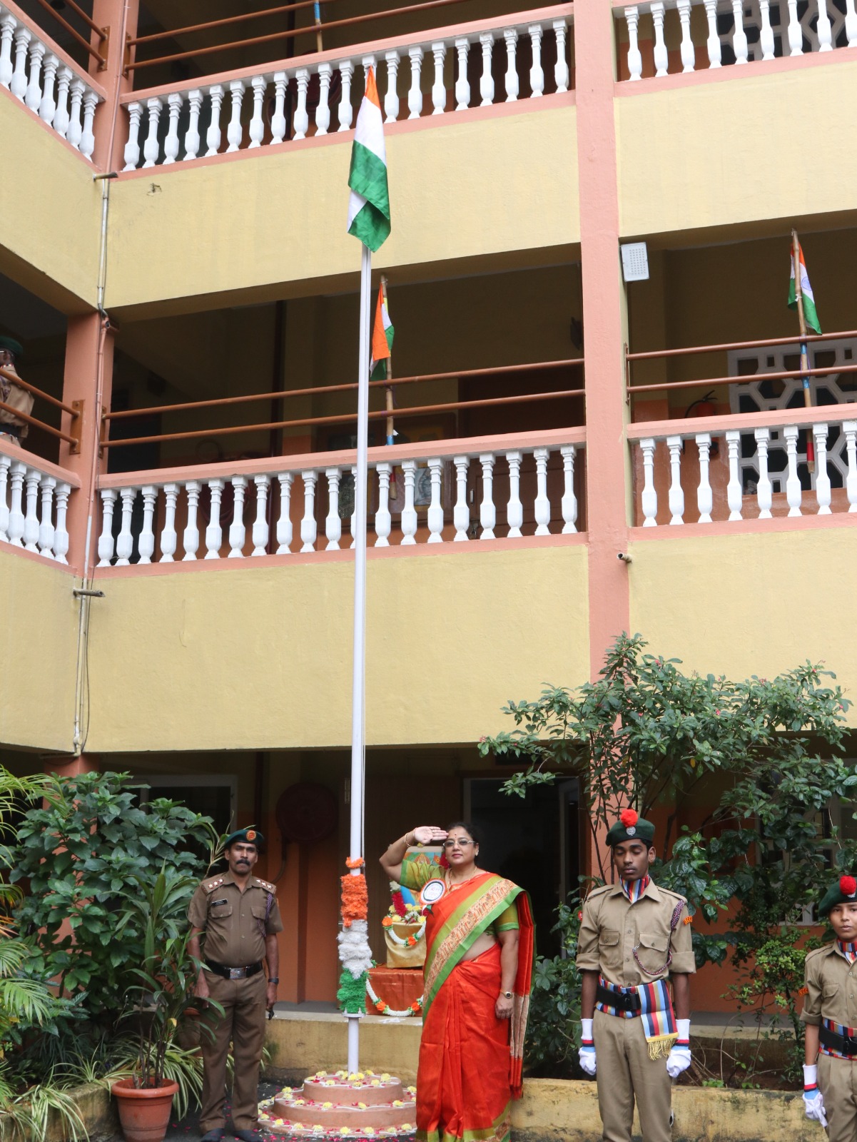 The Chief Guest for the occasion was the school’s distinguished alumnus, Mrs. Veena Seshadri (1992 Batch), M.Sc., MS., a renowned Bharatanatyam exponent and teacher. She proudly hoisted the National Flag and distributed prizes to the students, inspiring them with her presence.