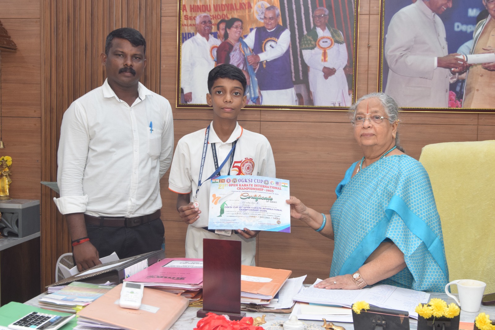 With this remarkable achievement, Kishan has been selected to represent Tamil Nadu at the National Level Karate Championship, which will be held in Pune, Maharashtra. Our Correspondent, Dr. Smt. Girija Seshadri, congratulated Kishan on his outstanding performance and encouraged him to continue his dedication and hard work to excel at the Nationals.